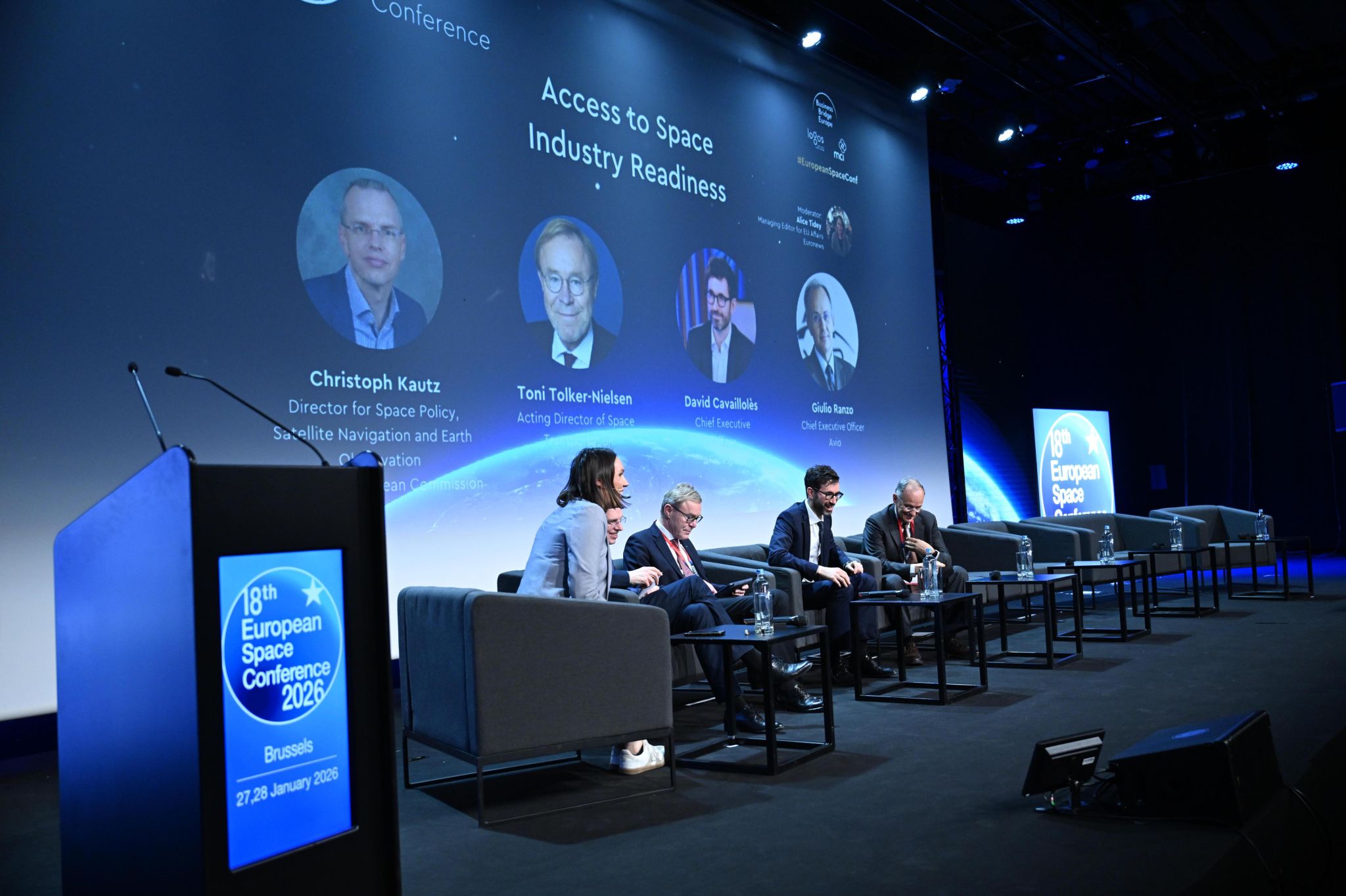 Modératrice : Alice Tidey, Managing Editor for EU Affairs à Euronews // Membres du panel : Christoph KAUTZ, Director, Satellite Navigation and Earth Observation, DG DEFIS; Toni TOLKER-NIELSEN, Acting Director of Space Transportation, ESA; David Cavaillolès, Président exécutif, Arianespace; Giulio RANZO, CEO, AVIO.