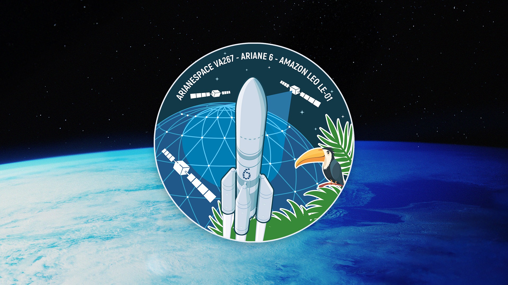 Arianespace unveils the official mission patch for the VA267 mission, dedicated to the first Ariane 6 launch of 32 Amazon Leo satellites into low Earth orbit.